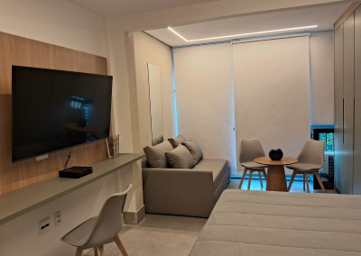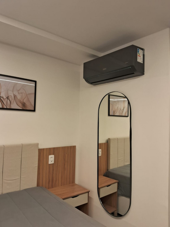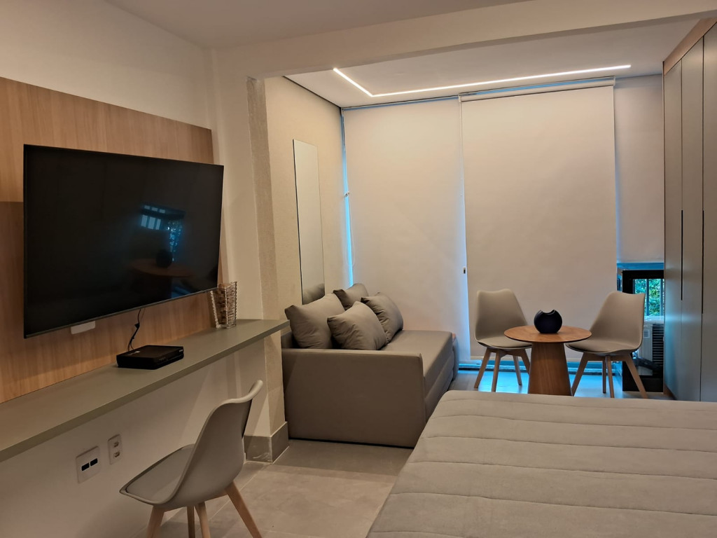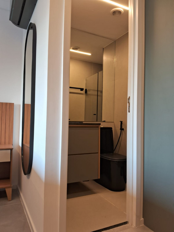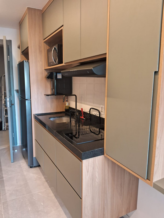 Belíssimo apartamento NOVO, TOTALMENTE MOBILIADO, VARANDA, 1 dormitório, sala, 1 banheiro, cozinha, lavanderia.